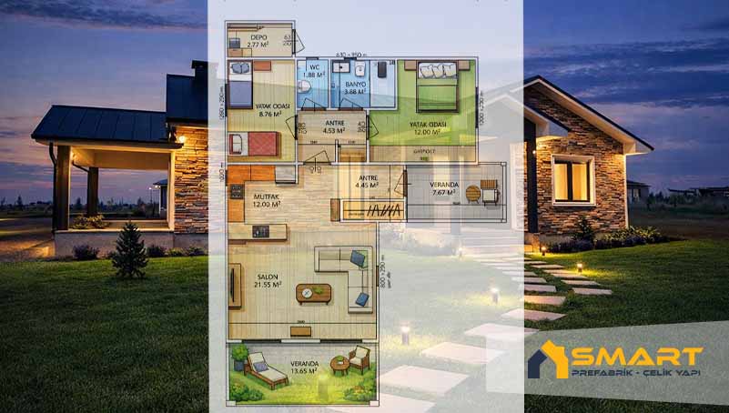 SM-30 modeli, Smart Çelik Yapı tarafından arsanıza özel olarak projelendirilir ve üretilir. Üretim süreci fabrika ortamında gerçekleştirilir, montaj aşaması ise kısa sürede tamamlanır.